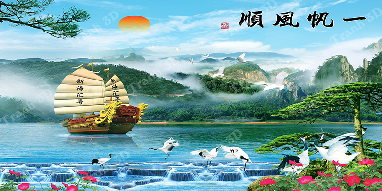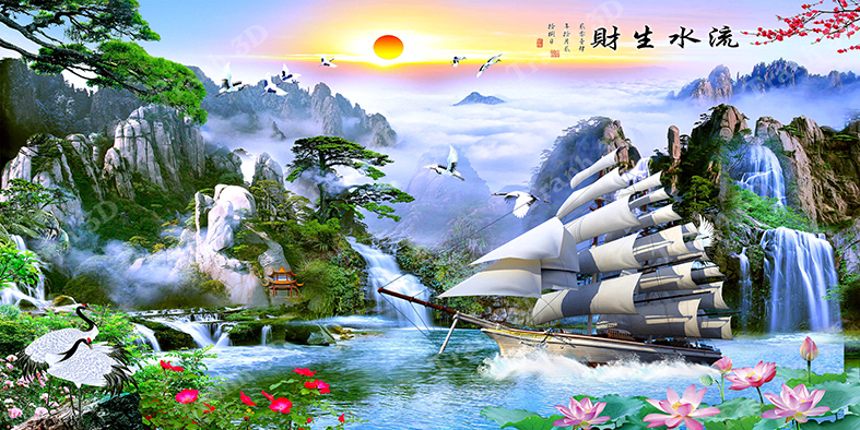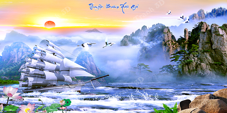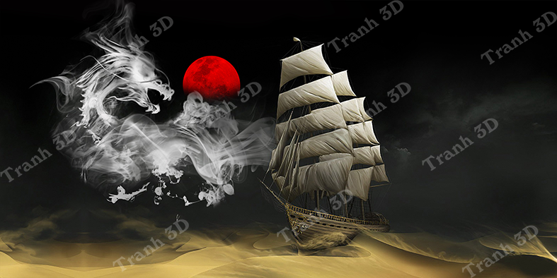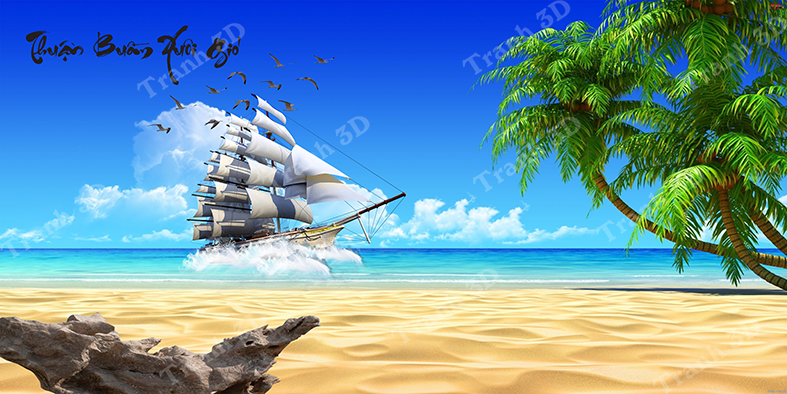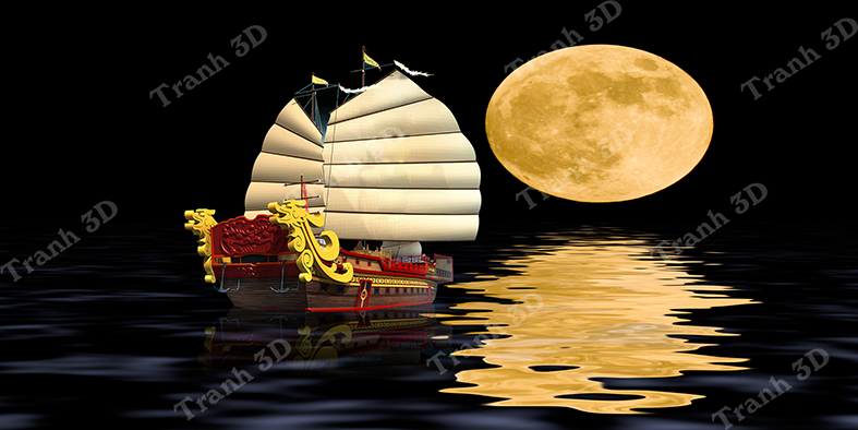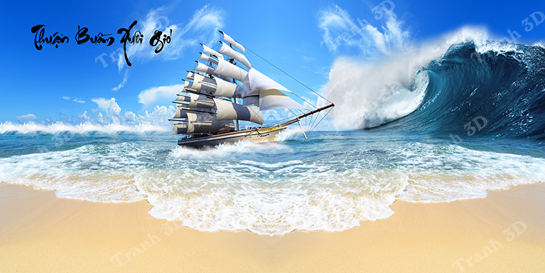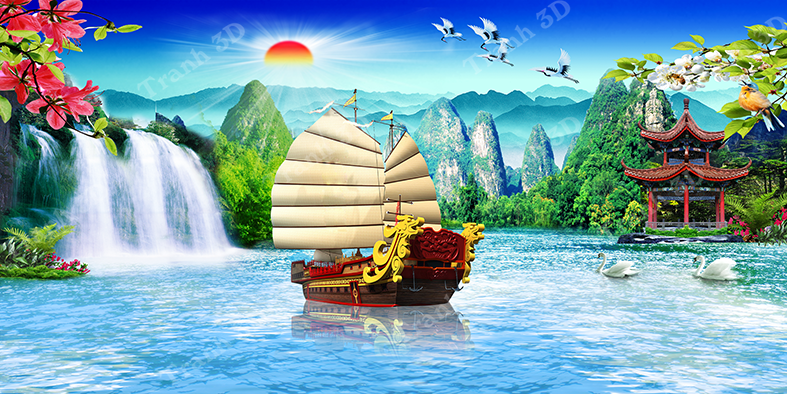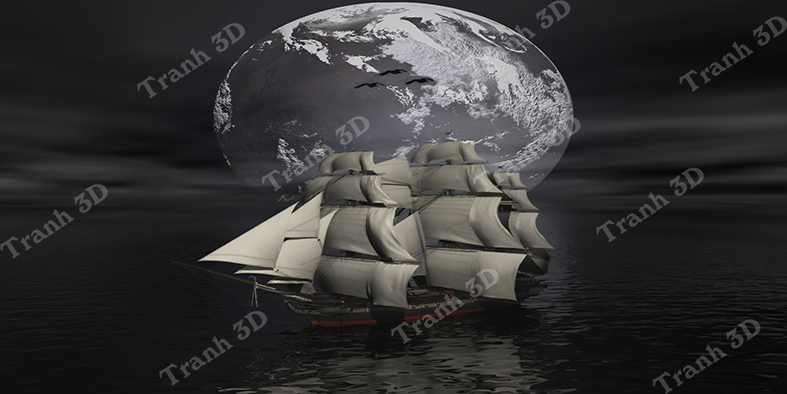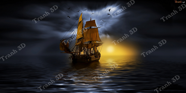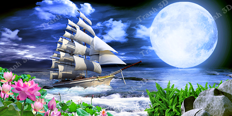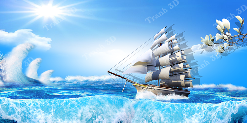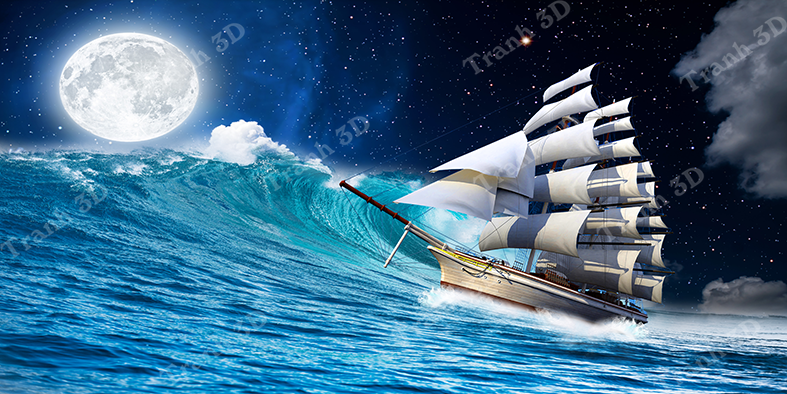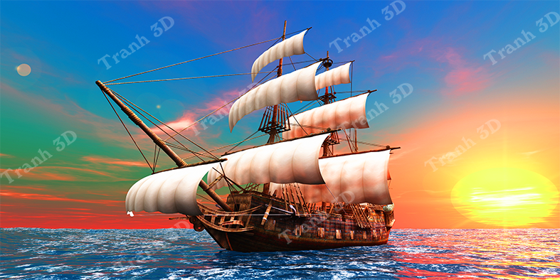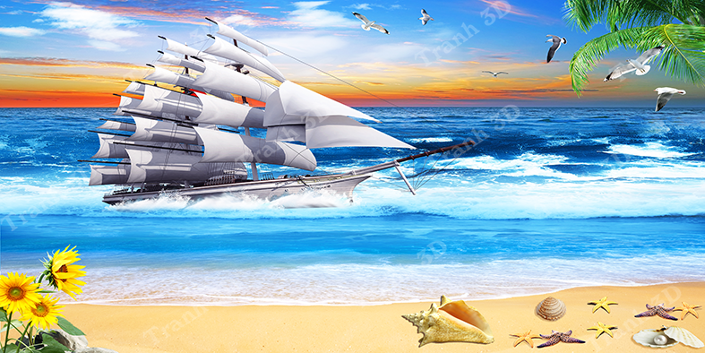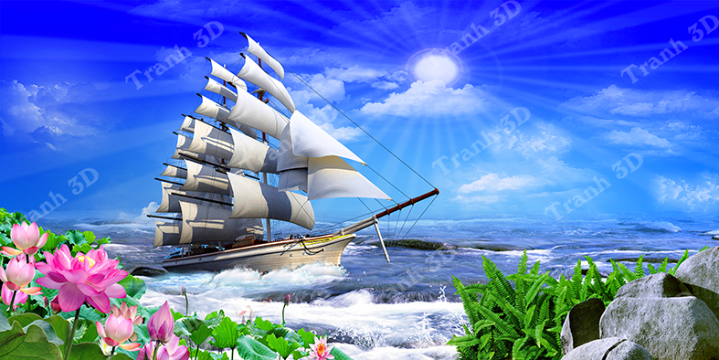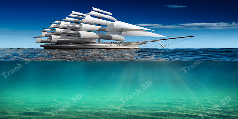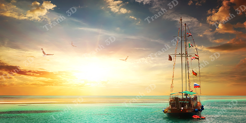 Tranh Thuyền Buồm-Tranh 3D Dán Hồ Cá - Decal Dán Hồ- Cá Cảnh Thiên Phước